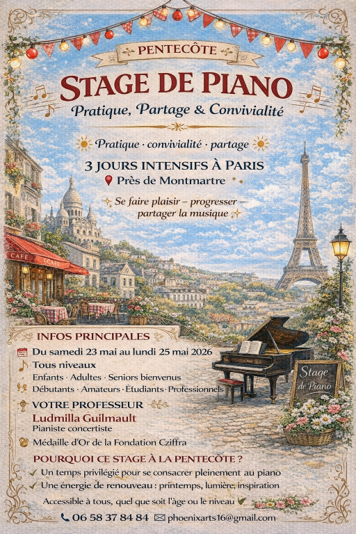 Pentecôte , Paris , stage de piano, 3 jours intensifs à Paris, 3 jours de partage et d'enthousiasme.