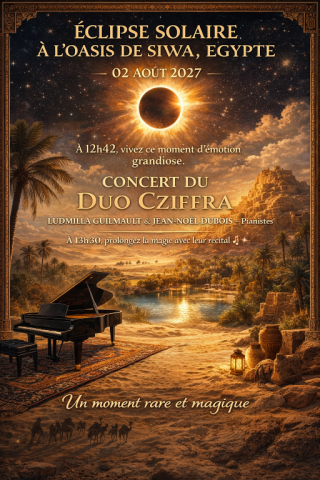 Concerts exceptionnel avec le Duo Cziffra.Egypte, à Siwa .Le 2 Aout 2027 Eclipse solaire .Concert à 13 h30
