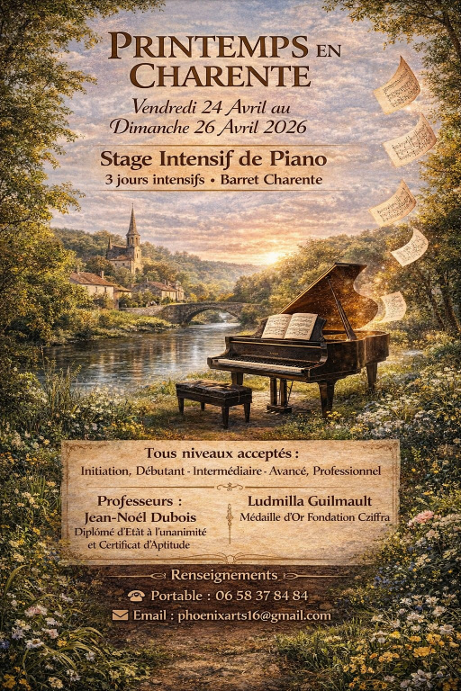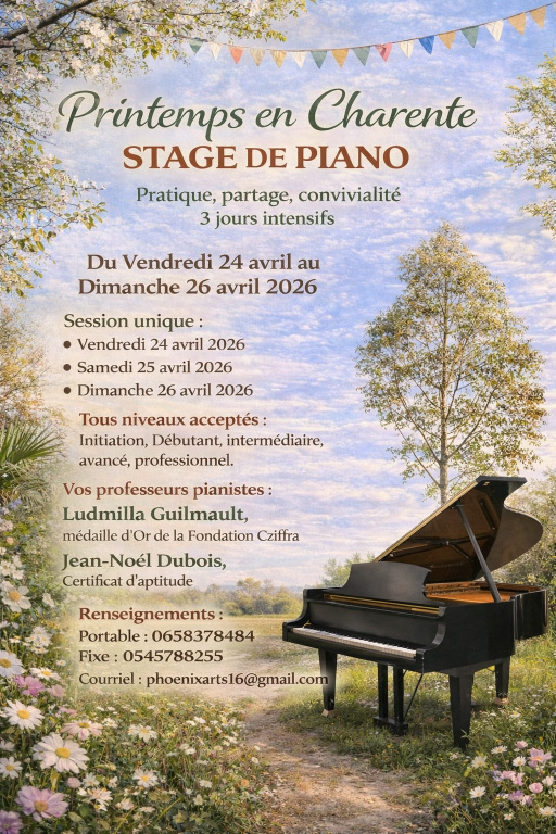 References: stage , 3 jours, Charente, Angoûlême, pianos, 4 mains, Duo Cziffra, musique de Chambre, Cognac, Bordeaux. stages et cours de musique, stages et cours de musique , piano 3 jours intensifs , fest , festival , piano, jardin botanique , a vous de jouer, 3 jours, Charente, piano 3 jours, seniors, Sud Charente Tourisme , spectable, tourisme Charente